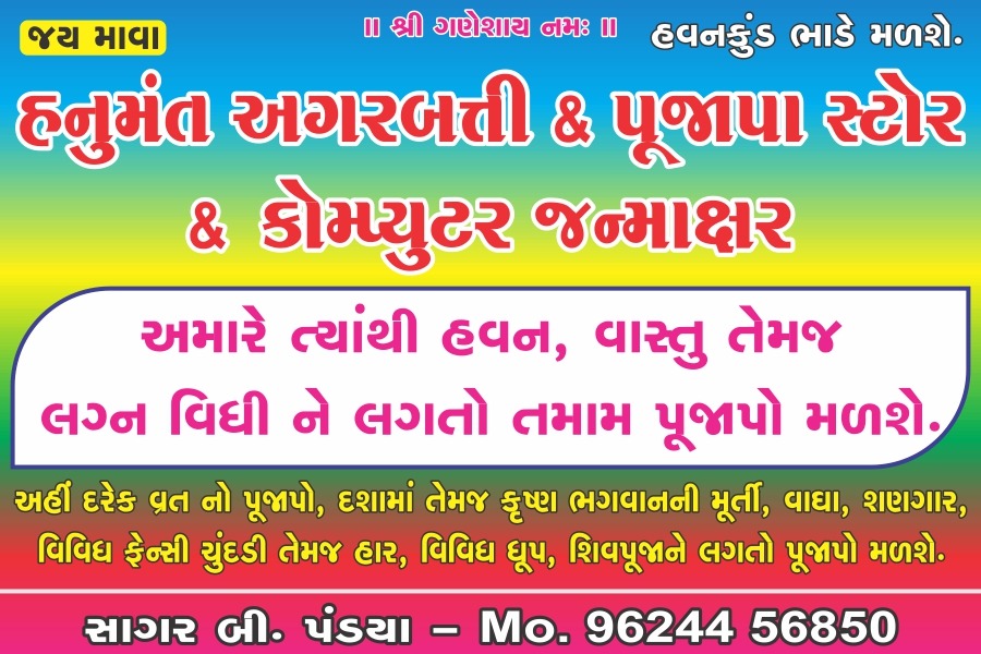 MAVA HANUMANT PUJAPA BHANDAR is a one-stop solution for your puja related religious items. Our product range includes havan items, deity idols, rudraksha, yantras, gemstones, items for offerings deities, pooja utensils, puja clothes, incense, dhotis and chunris. We also specialise in individual and personalised poojas, Yagnas & homam.